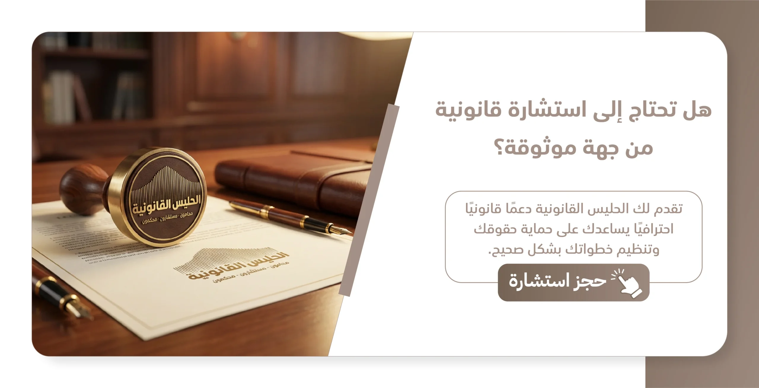 إذا كنت تبحث عن مكتب استشارات قانونية ومحاماة يبني أمانك القانوني، فنحن هنا لخدمتك، تواصل معنا الآن لتبدأ رحلة الحماية والنجاح مع نخبة الخبراء.